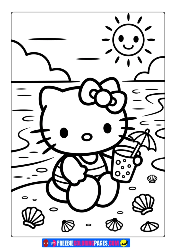 Summer designs transport Hello Kitty to beaches, swimming pools, and vacation destinations. These scenes provide opportunities to discuss travel, recreation, and seasonal activities while developing coloring skills.